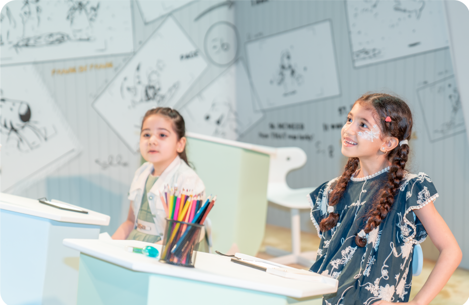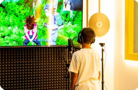استديوهات الإنتاج هي رحلة شيّقة ينتقل خلالها الزائر بين الاستديوهات ليكتشف أسرار تقنية الموشن كابتشر و ينتقل بعدها ليجرب دبلجة مشاهد و أغاني من برنامجه الكرتوني المفضل و أخيرا سيتعلم الزائر بنفسه كيف تُصنع المؤثرات الصوتية في الأفلام